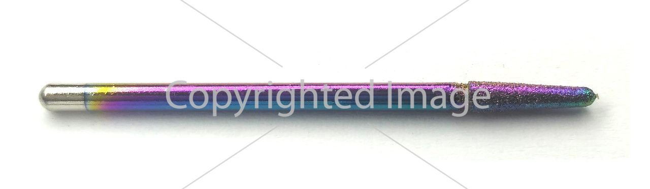 Фреза з алмазним напиленням Chameleo Diamond Burr F 10008 забарвлення Хамелеон, Конус (діаметр - 2,6 мм, w - 10 мм) підходить для чищення бічних валиків, обробки бічних синусів, шліфування нігтьової пластини перед нарощуванням і т.п.