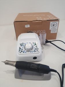 Блок Mighty має приємний дизайн та форму, він досить лаконічний та ергономічний, що забезпечує приємний візуальний ефект. Гніздо для увімкнення ручки розмістилося на передній панелі під регулятором швидкості. А кнопки включення та реверсу залишилися на бічній панелі. На задній частині, як заведено, розташовані гніздо педалі і потрібна кнопка для переходу на керування в ножному режимі. Отвори для фрез на верхній частині блоку також збереглися.