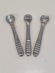 Педикюрний верстат - з його допомогою легко позбутися неприємних натоптишів на стопах. Зручна ручка з насічками ідеально лягає в руку, не ковзає. Високоякісна нержавіюча сталь робочої поверхні та леза, дає можливість видалити шкіру, що огрубіла, не побоюючись при цьому поранитися. Комплектується одним лезом. Перед тим як використовувати тертку, потрібно добре розпарити ноги. Перед застосуванням верстата, варто його простерилізувати за допомогою дезінфікуючих засобів або стерилізатора. Акуратно зіскребти натоптиші. Після проведення процедури сполоснути ноги і змастити|змазати| кремом або лосьйоном. Промити та продезінфікувати тертку-верстат. Запобіжні заходи: використовувати тільки за призначенням; регулярно міняти леза; зберігати у місцях недоступних для дітей