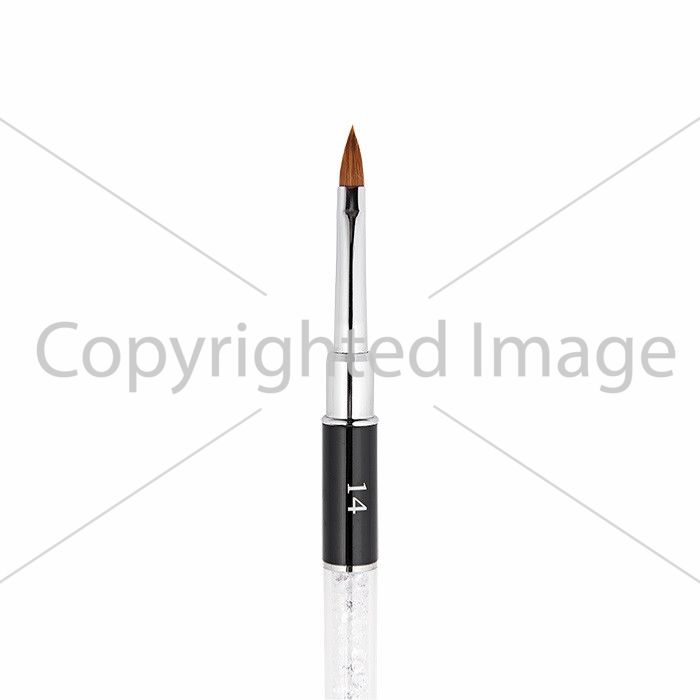 Пензель FOX # 14 "Пелюстка" цікавого дизайну зі скляною колбочкою, де знаходяться дрібні діаманти, оснащена ковпачком для зручного зберігання, оскільки він допомагає захистити ворс кисті від пошкоджень і зберегти її в хорошому стані.