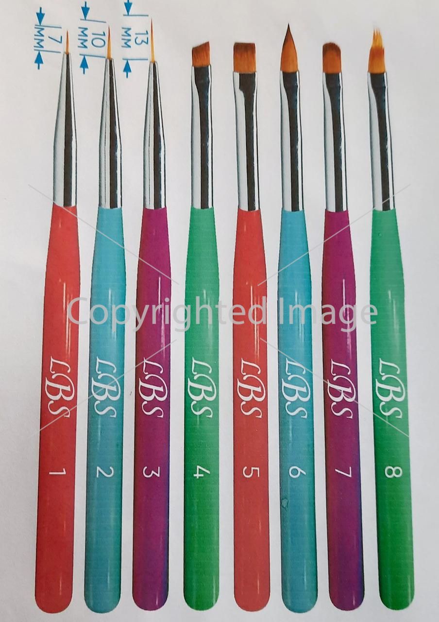 Пензель кольоровий LBS для малювання 1 підходить для створення тонких ліній, вензелів, малюнків на нігтях, промальовування складних візерунків, а також для вирівнювання та покриття під кутикулу гель лаку.