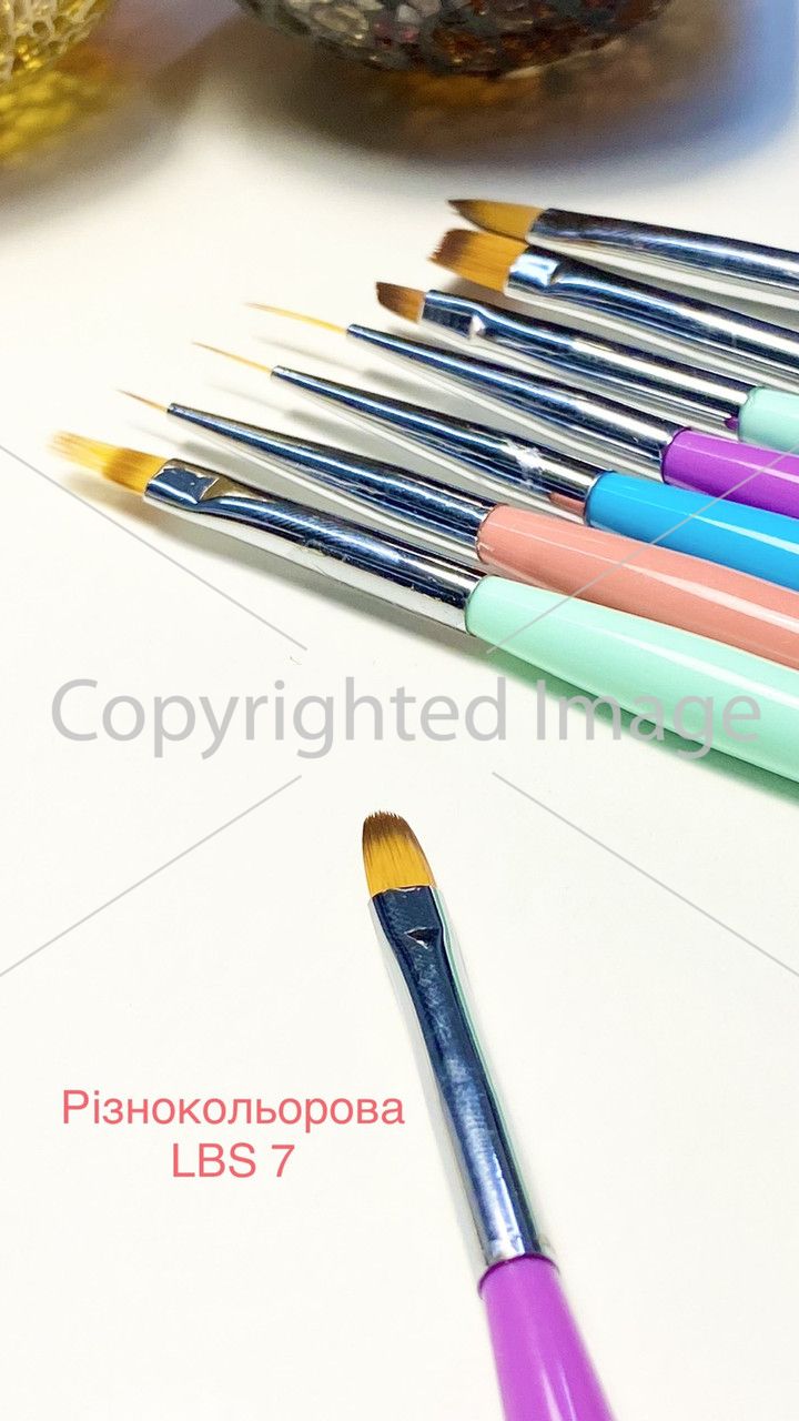 Пензель кольоровий LBS 7 для моделювання нігтів гелем овальний