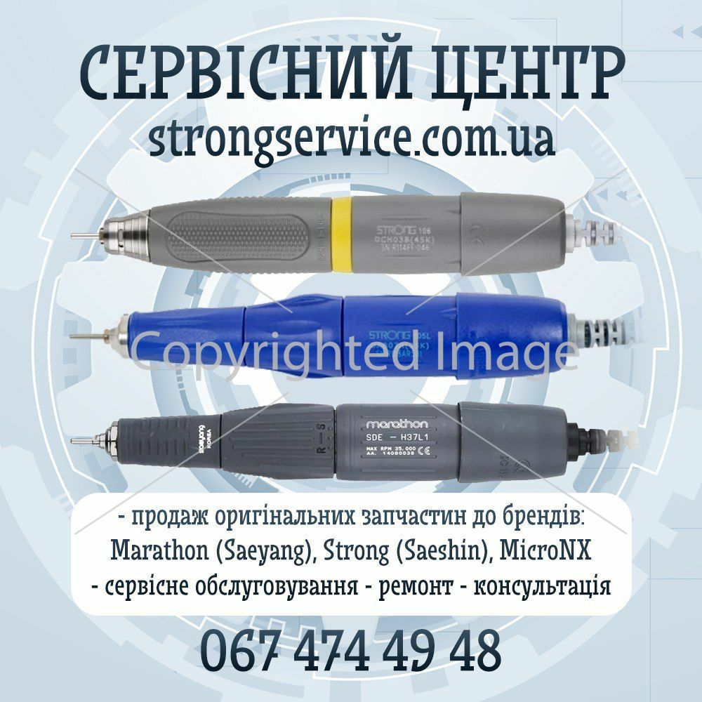 Наш сервисный центр Стронг Сервис производит ремонт и профилактику фрезеров/микромоторов Marathon ,Strong,Micro NX,JSDA,HYMARS/