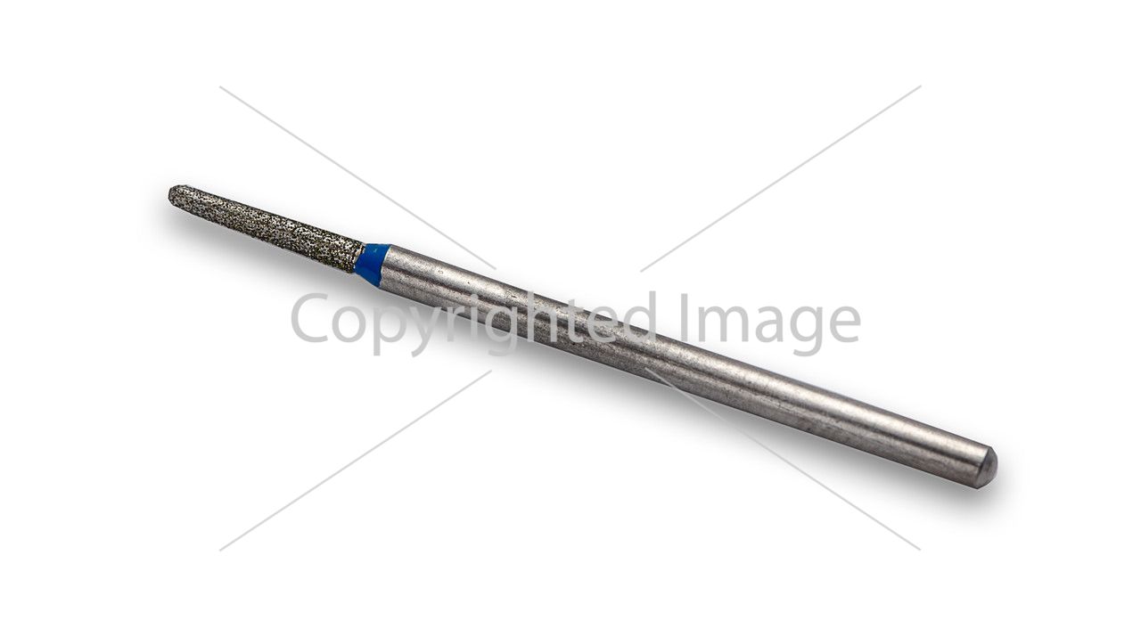 Фреза с алмазным напылением Игла (диаметр-1,9 мм,Н-10,5 мм) отлично подходит для удаления птеригия ,поднятия и раскрытия кутикулы.Также этой фрезой делают корекцию наращенных ногтей-спиливают изнутри натуральный ноготь .При работе такую фрезу нужно держать почти параллельно.