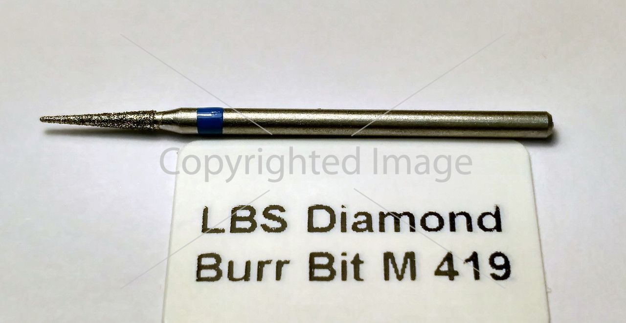 Фреза с алмазным напылением Игла (диаметр-1,9 мм,Н-10,5 мм) отлично подходит для удаления птеригия ,поднятия и раскрытия кутикулы.Также этой фрезой делают корекцию наращенных ногтей-спиливают изнутри натуральный ноготь .При работе такую фрезу нужно держать почти параллельно.