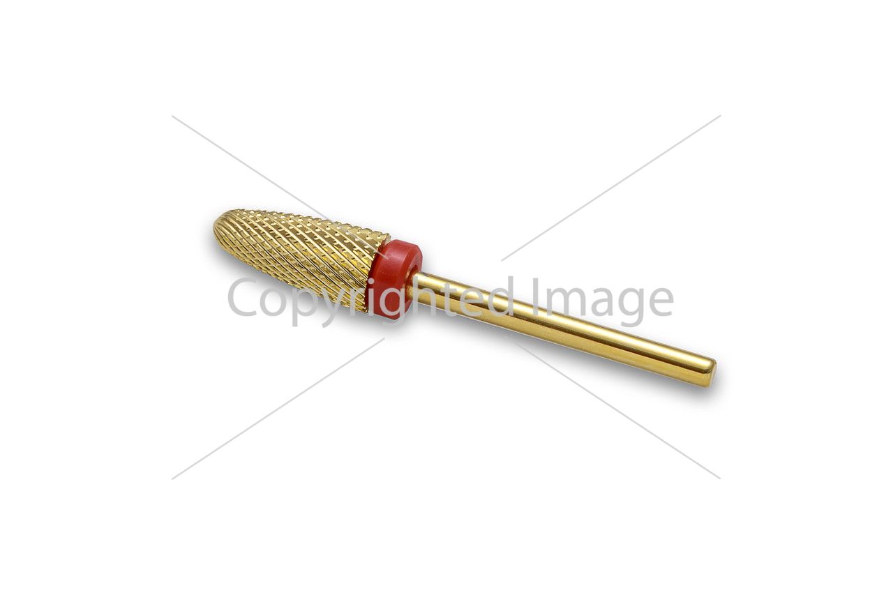 Твердосплавная фреза золотая F Tree Shape с красной насечкой (с пластиковым кольцом) изготовлена из метала повышенной твердости,с мелким абразивом,имеет высокую прочность и долговечность,легко поддается дезинфекции и стерилизации.