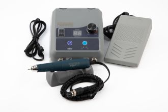 На передній частині корпусу розташований роз'єм для підключення мікромотора і для підключення реостатної педалі. регулятор швидкості обертання фрези, кнопки OFF/ON, реверс та перемикач на реостатну педаль.