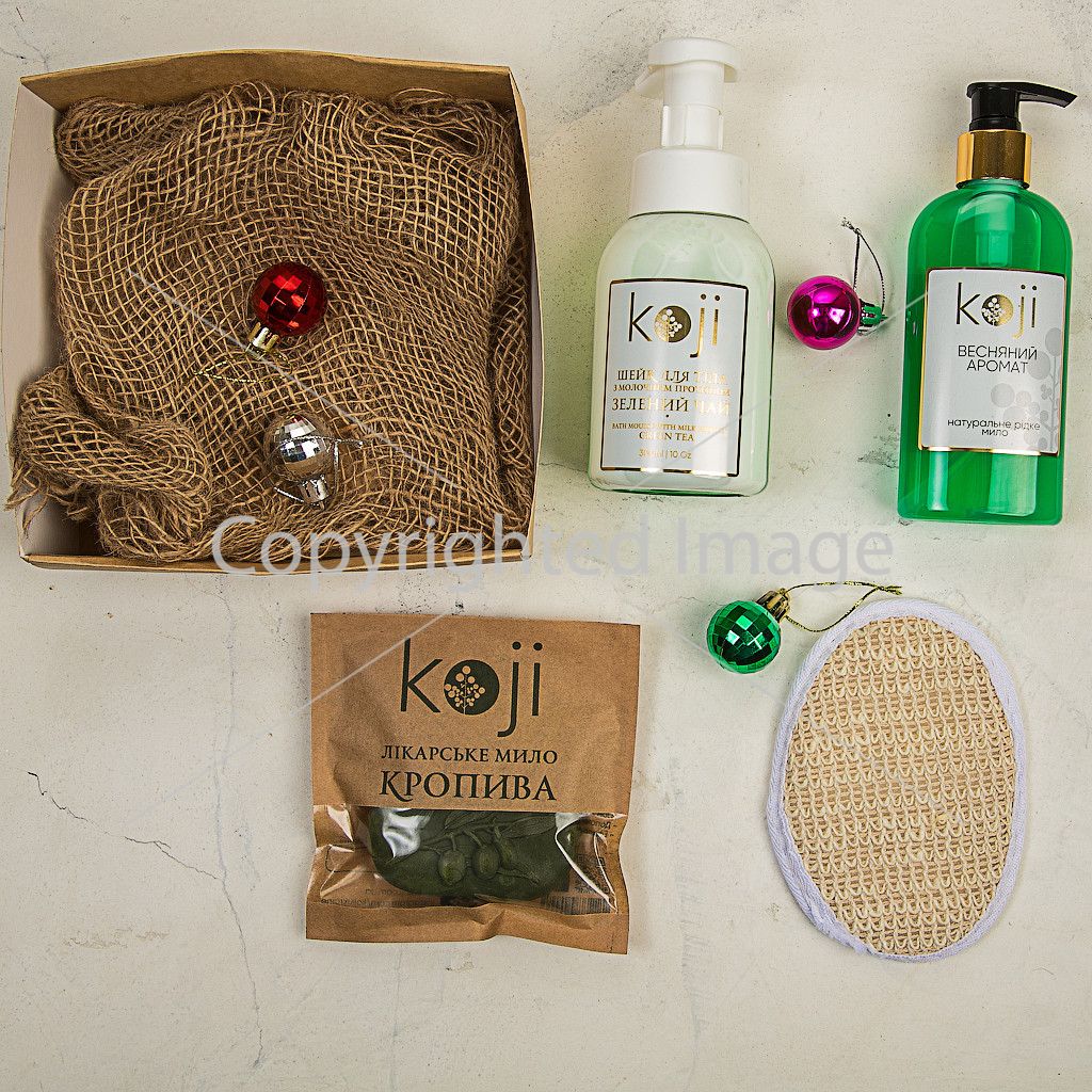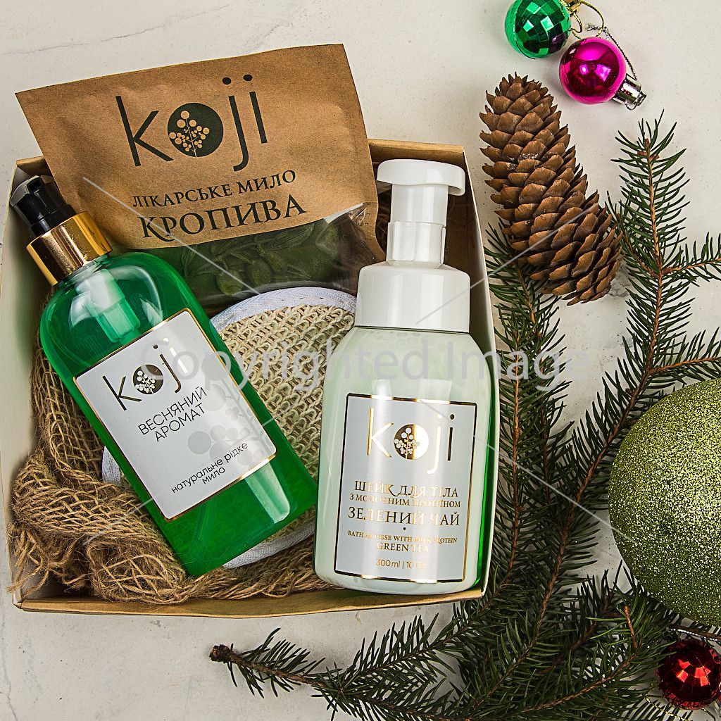 Новорічні набори з косметикою – приємний та корисний подарунок. Ми зібрали найпопулярніші продукти ТМ Koji , додали потрібні у використанні речі і тепер все це доступно в одному подарунковому боксі.