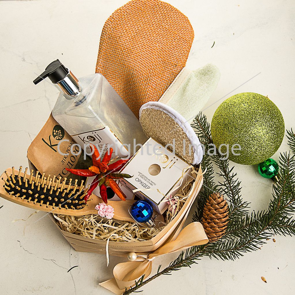 Готовий подарунковий набір на Новий рік, що складається з натуральної косметики для догляду за тілом та маленьких дрібничок, які ми використовуємо для підтримки своєї краси та молодості.