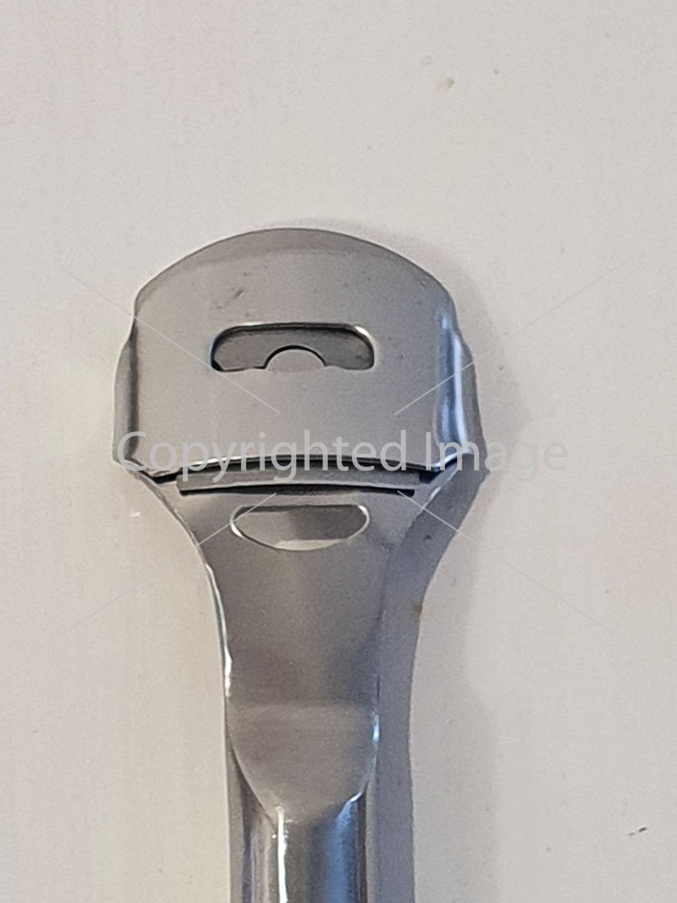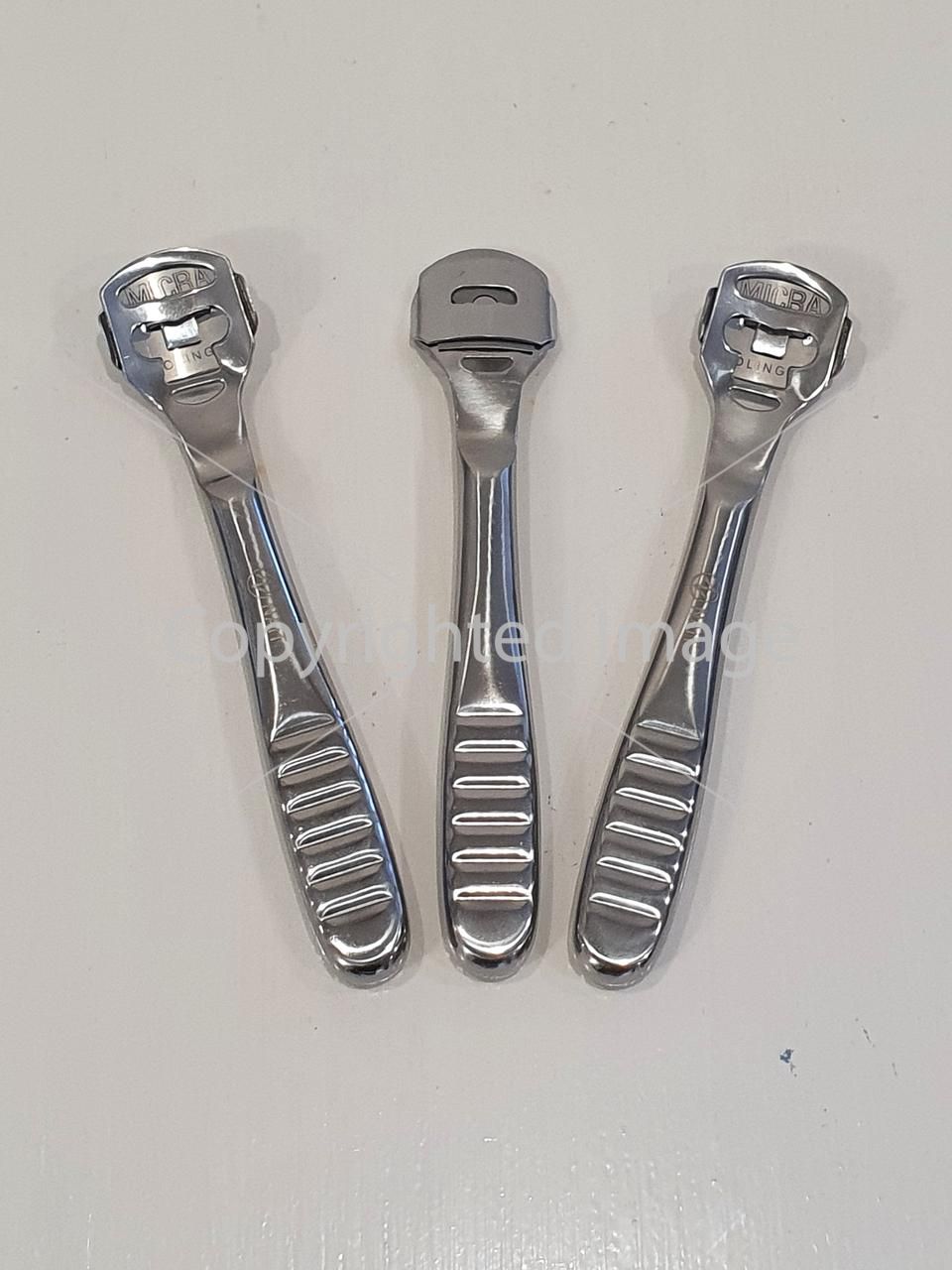 Педикюрний верстат - з його допомогою легко позбутися неприємних натоптишів на стопах. Зручна ручка з насічками ідеально лягає в руку, не ковзає. Високоякісна нержавіюча сталь робочої поверхні та леза, дає можливість видалити шкіру, що огрубіла, не побоюючись при цьому поранитися. Комплектується одним лезом. Перед тим як використовувати тертку, потрібно добре розпарити ноги. Перед застосуванням верстата, варто його простерилізувати за допомогою дезінфікуючих засобів або стерилізатора. Акуратно зіскребти натоптиші. Після проведення процедури сполоснути ноги і змастити|змазати| кремом або лосьйоном. Промити та продезінфікувати тертку-верстат. Запобіжні заходи: використовувати тільки за призначенням; регулярно міняти леза; зберігати у місцях недоступних для дітей