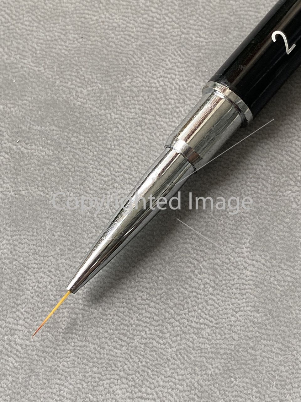 Матеріал пензля – зносостійкий нейлоновий ворс, що відрізняється високою жорсткістю та пружністю робочого полотна, не фарбується пігментом і не затримує матеріал. Довжина ворсу тонкого пензля 9 мм.