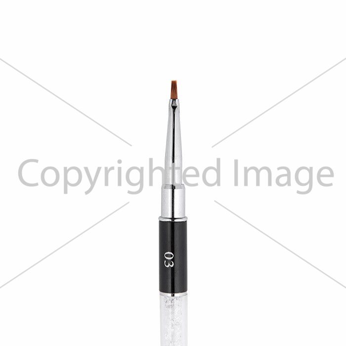 Пензель FOX # 03 цікавого дизайну зі скляною колбочкою, де знаходяться дрібні діаманти, оснащена ковпачком для зручного зберігання, оскільки він допомагає захистити ворс пензля від пошкоджень і зберегти його в хорошому стані.