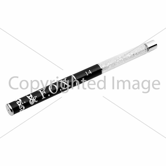 Пензель FOX # 14 "Пелюстка" цікавого дизайну зі скляною колбочкою, де знаходяться дрібні діаманти, оснащена ковпачком для зручного зберігання, оскільки він допомагає захистити ворс кисті від пошкоджень і зберегти її в хорошому стані.